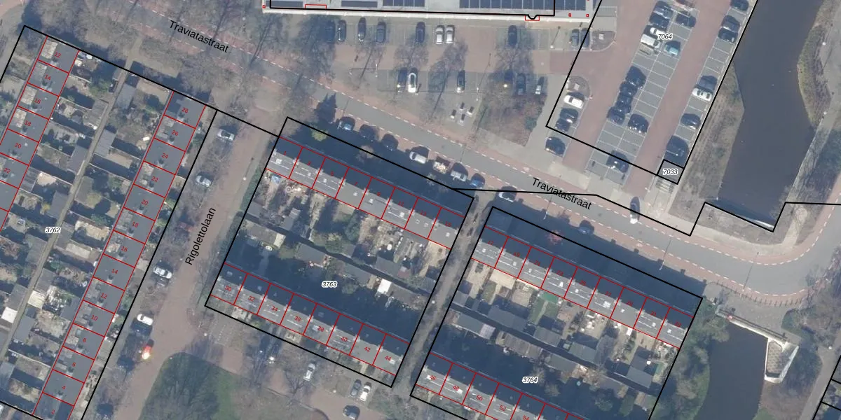 Traviatastraat 13 is gelegen op kadastraal perceel ASV00I3763. Deze kadastrale aanduiding is uniek en wordt gebruikt door het Kadaster om eigendomsrechten en andere zakelijke rechten vast te leggen. Het perceel maakt onderdeel uit van de kadastrale gemeente Amstelveen.