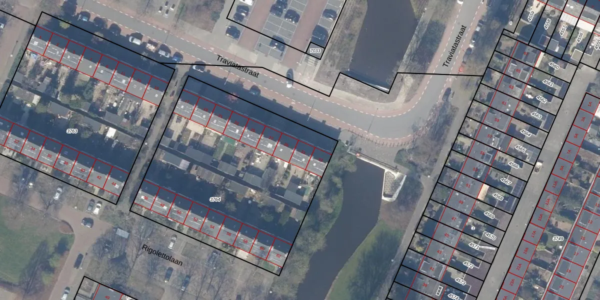 Het perceel waarop Traviatastraat 31 staat heeft een oppervlakte van 2663 m². Dit is een zeer groot perceel. De perceeloppervlakte wordt geregistreerd door het Kadaster. Gedetailleerde informatie over de maten van dit perceel kunt u vinden in het rapport Kadastrale kaart met maatvoering van Traviatastraat 31.