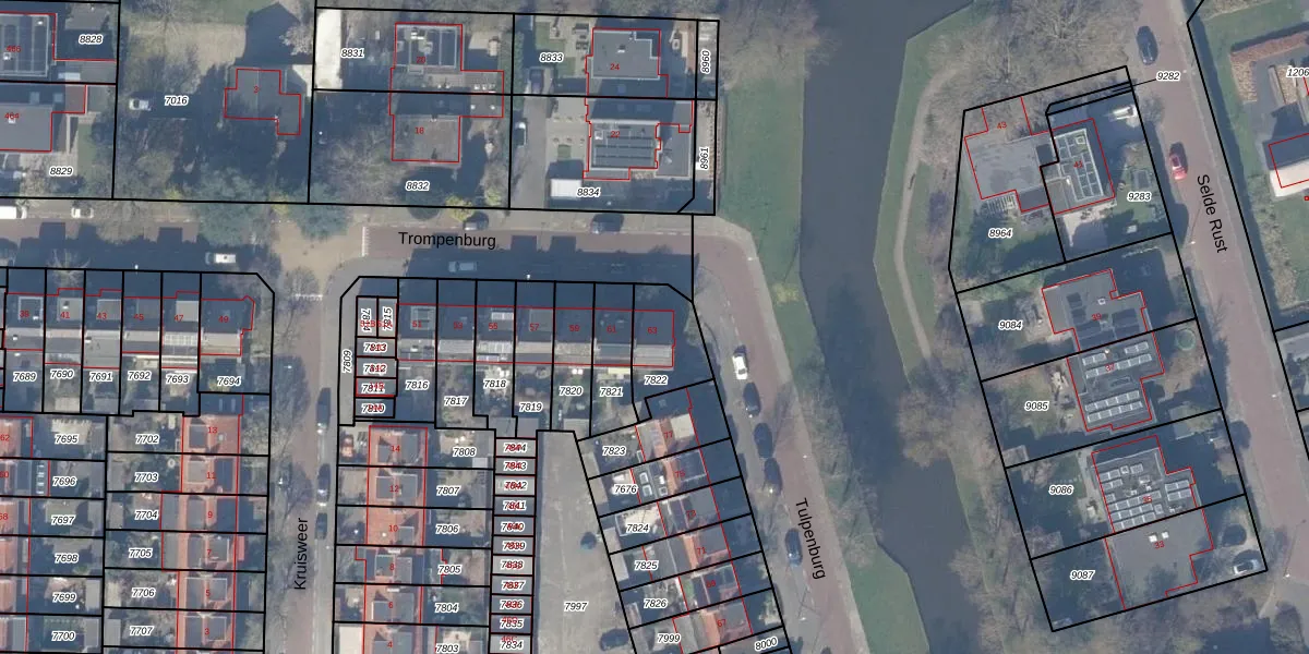 Het perceel waarop Trompenburg 63 staat heeft een oppervlakte van 175 m². Dit is een middelgroot perceel. De perceeloppervlakte wordt geregistreerd door het Kadaster. Gedetailleerde informatie over de maten van dit perceel kunt u vinden in het rapport Kadastrale kaart met maatvoering van Trompenburg 63.