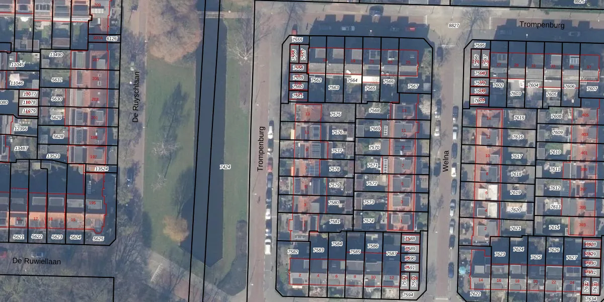 Gebruik de zoekbalk of klik op een perceel voor informatie over de adressen binnen dit perceel.