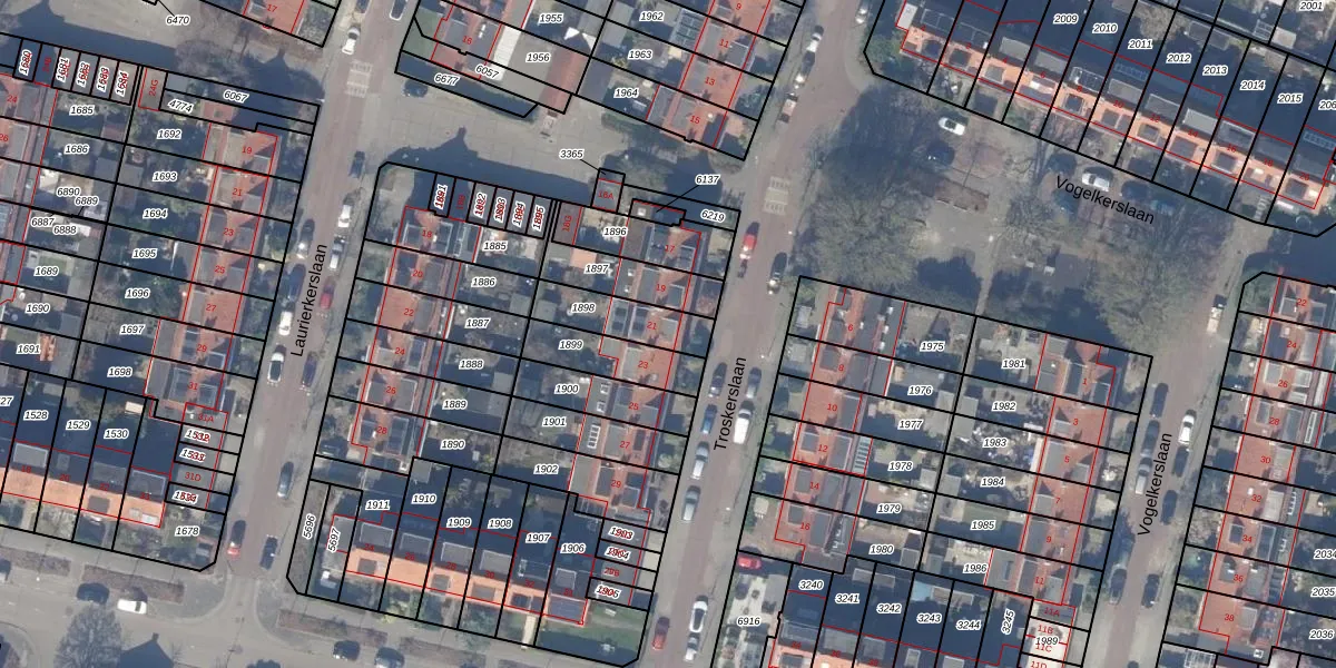 Gebruik de zoekbalk of klik op een perceel voor informatie over de adressen binnen dit perceel.