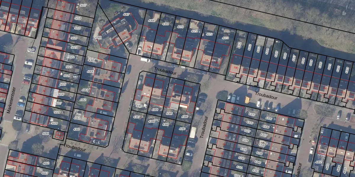 Het perceel waarop Troubadour 11 staat heeft een oppervlakte van 193 m². Dit is een middelgroot perceel. De perceeloppervlakte wordt geregistreerd door het Kadaster. Gedetailleerde informatie over de maten van dit perceel kunt u vinden in het rapport Kadastrale kaart met maatvoering van Troubadour 11.