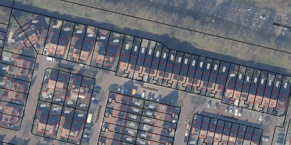 Het perceel waarop Troubadour 130 staat heeft een oppervlakte van 148 m². Dit is een middelgroot perceel. De perceeloppervlakte wordt geregistreerd door het Kadaster. Gedetailleerde informatie over de maten van dit perceel kunt u vinden in het rapport Kadastrale kaart met maatvoering van Troubadour 130.