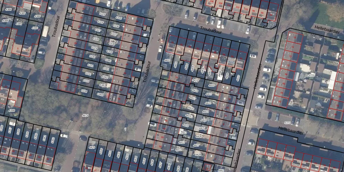 Gebruik de zoekbalk of klik op een perceel voor informatie over de adressen binnen dit perceel.