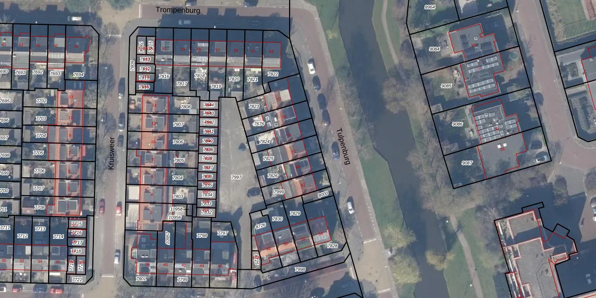 Gebruik de zoekbalk of klik op een perceel voor informatie over de adressen binnen dit perceel.