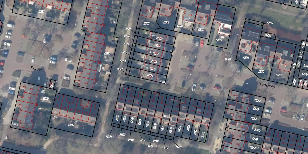 Gebruik de zoekbalk of klik op een perceel voor informatie over de adressen binnen dit perceel.