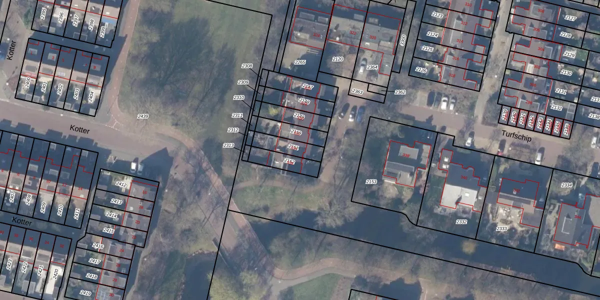 Gebruik de zoekbalk of klik op een perceel voor informatie over de adressen binnen dit perceel.