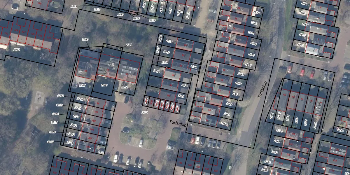 Gebruik de zoekbalk of klik op een perceel voor informatie over de adressen binnen dit perceel.