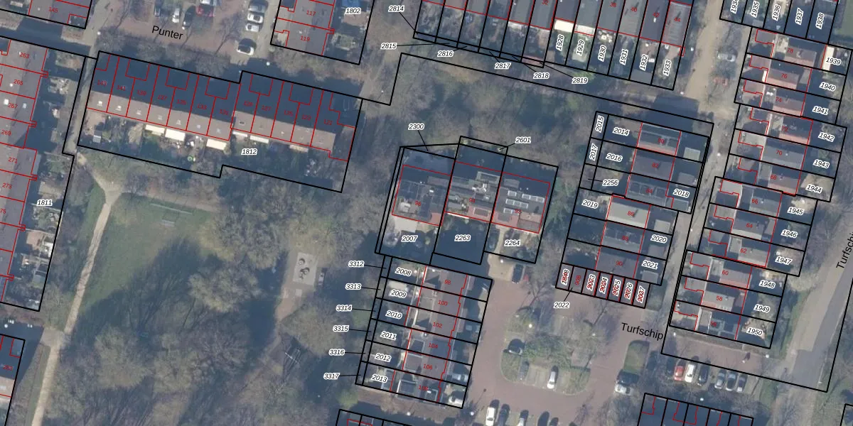 Gebruik de zoekbalk of klik op een perceel voor informatie over de adressen binnen dit perceel.