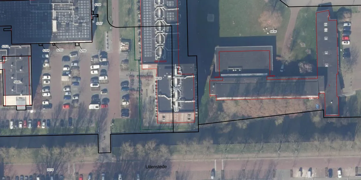 Het perceel waarop Uilenstede 500-61 staat heeft een oppervlakte van 6762 m². Dit is een zeer groot perceel. De perceeloppervlakte wordt geregistreerd door het Kadaster. Gedetailleerde informatie over de maten van dit perceel kunt u vinden in het rapport Kadastrale kaart met maatvoering van Uilenstede 500-61.