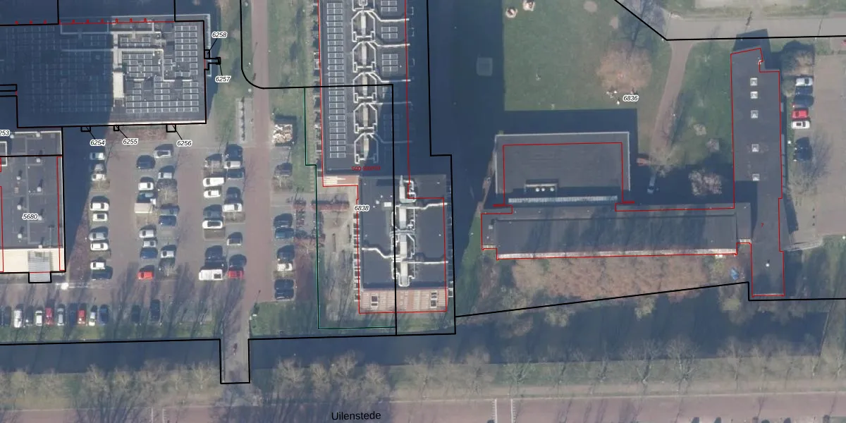 Het perceel waarop Uilenstede 500-71 staat heeft een oppervlakte van 6762 m². Dit is een zeer groot perceel. De perceeloppervlakte wordt geregistreerd door het Kadaster. Gedetailleerde informatie over de maten van dit perceel kunt u vinden in het rapport Kadastrale kaart met maatvoering van Uilenstede 500-71.