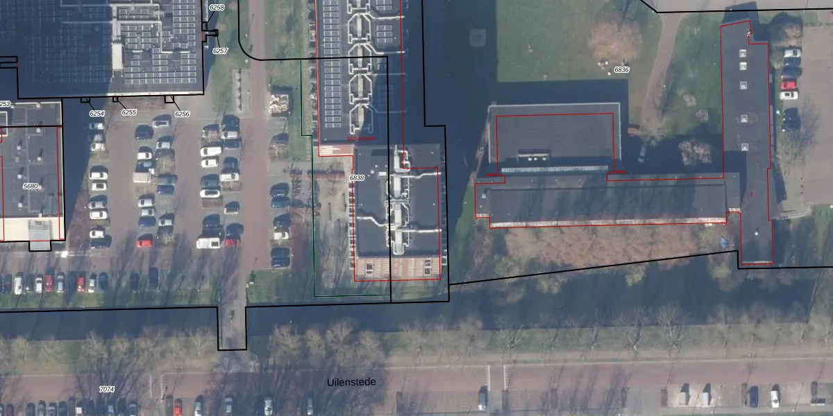 Het perceel waarop Uilenstede 500-74 staat heeft een oppervlakte van 6762 m². Dit is een zeer groot perceel. De perceeloppervlakte wordt geregistreerd door het Kadaster. Gedetailleerde informatie over de maten van dit perceel kunt u vinden in het rapport Kadastrale kaart met maatvoering van Uilenstede 500-74.