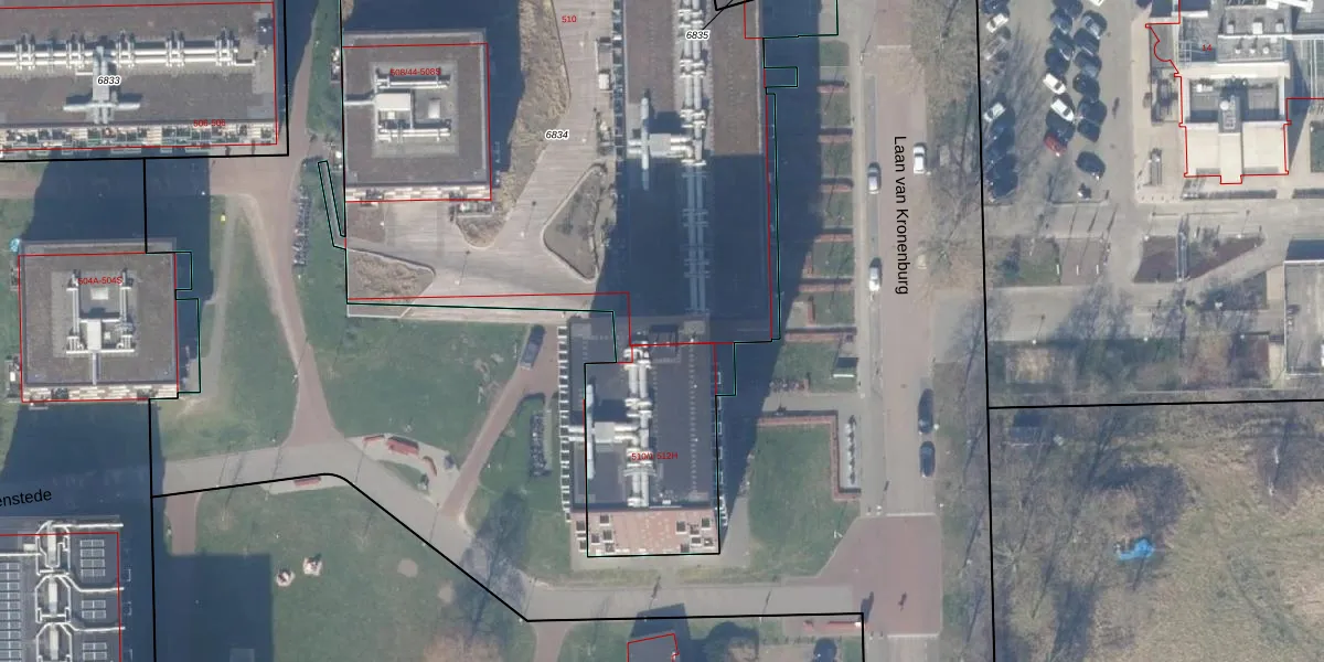 Uilenstede 510-12 is gelegen op kadastraal perceel ASV00I6834. Deze kadastrale aanduiding is uniek en wordt gebruikt door het Kadaster om eigendomsrechten en andere zakelijke rechten vast te leggen. Het perceel maakt onderdeel uit van de kadastrale gemeente Amstelveen.