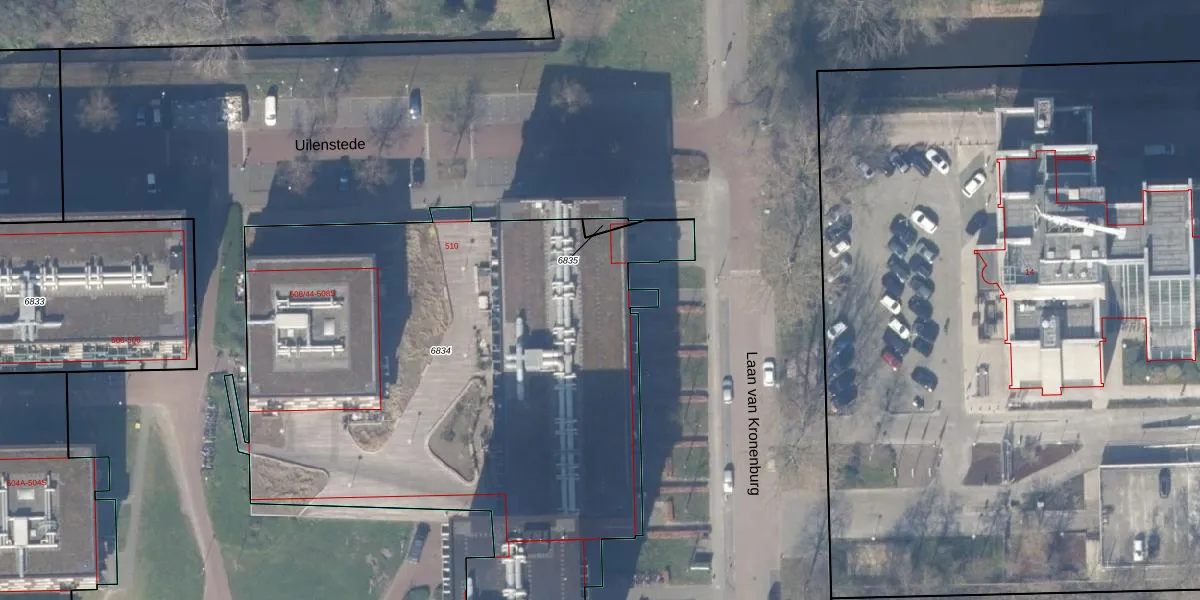 Uilenstede 510-89 is gelegen op kadastraal perceel ASV00I6834. Deze kadastrale aanduiding is uniek en wordt gebruikt door het Kadaster om eigendomsrechten en andere zakelijke rechten vast te leggen. Het perceel maakt onderdeel uit van de kadastrale gemeente Amstelveen.