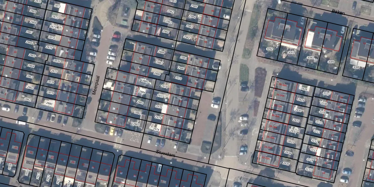 Gebruik de zoekbalk of klik op een perceel voor informatie over de adressen binnen dit perceel.