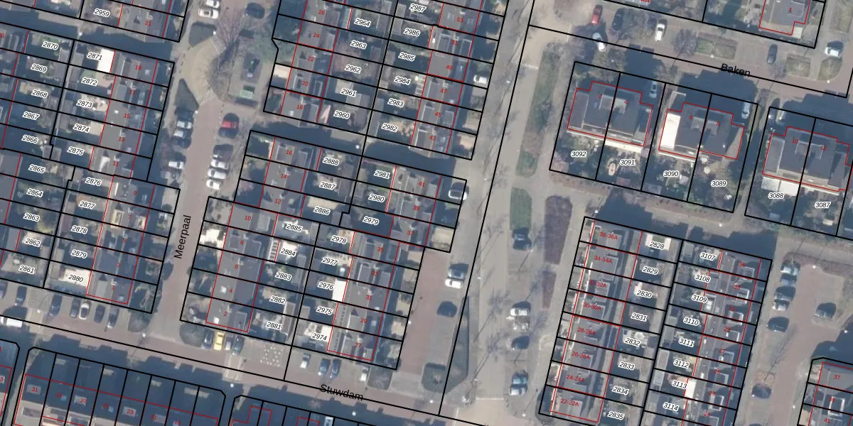 Gebruik de zoekbalk of klik op een perceel voor informatie over de adressen binnen dit perceel.