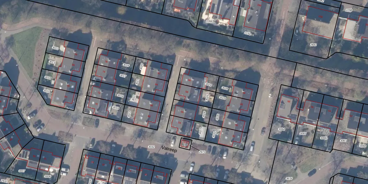 Het perceel waarop Valreep 58 staat heeft een oppervlakte van 189 m². Dit is een middelgroot perceel. De perceeloppervlakte wordt geregistreerd door het Kadaster. Gedetailleerde informatie over de maten van dit perceel kunt u vinden in het rapport Kadastrale kaart met maatvoering van Valreep 58.
