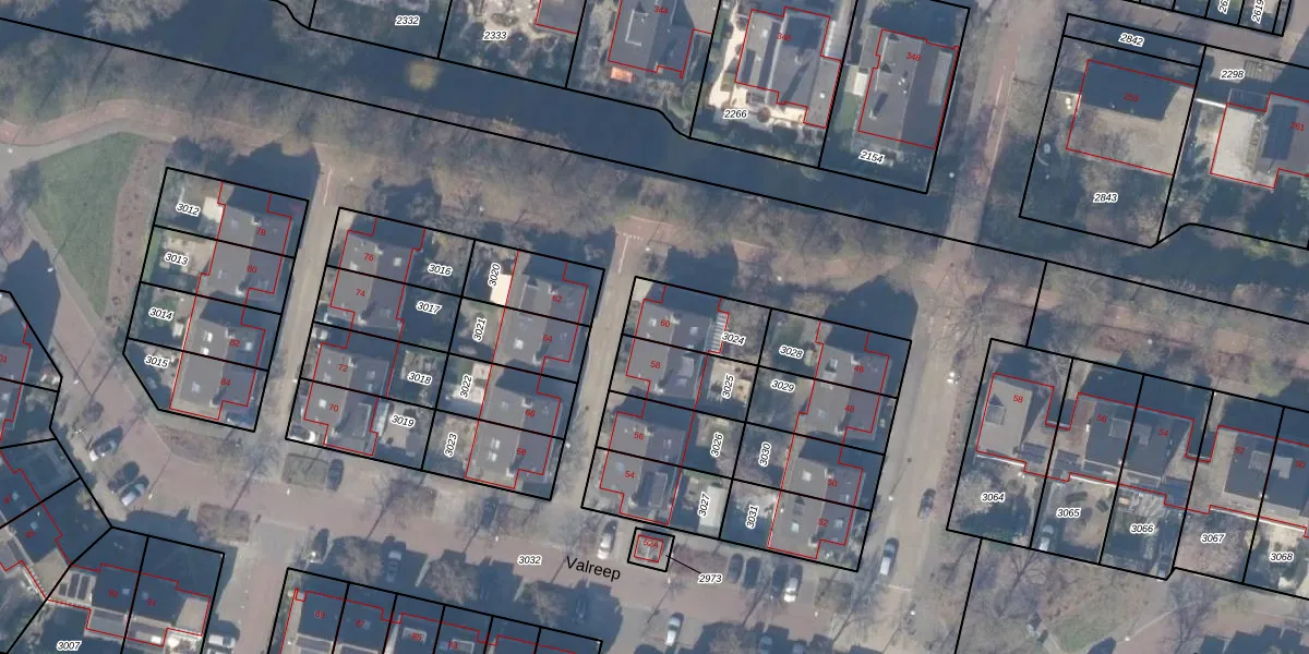 Het perceel waarop Valreep 60 staat heeft een oppervlakte van 192 m². Dit is een middelgroot perceel. De perceeloppervlakte wordt geregistreerd door het Kadaster. Gedetailleerde informatie over de maten van dit perceel kunt u vinden in het rapport Kadastrale kaart met maatvoering van Valreep 60.