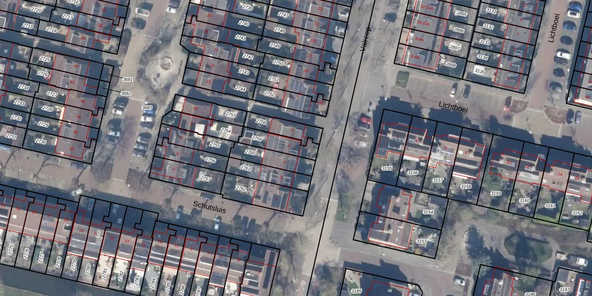 Gebruik de zoekbalk of klik op een perceel voor informatie over de adressen binnen dit perceel.