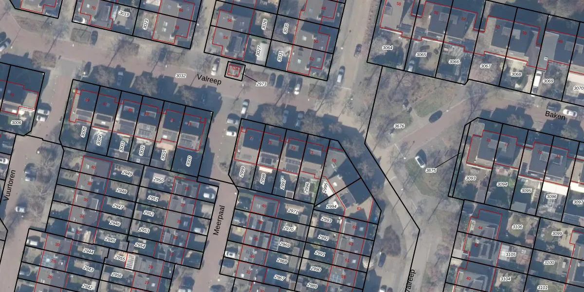 Het perceel waarop Valreep 73 staat heeft een oppervlakte van 173 m². Dit is een middelgroot perceel. De perceeloppervlakte wordt geregistreerd door het Kadaster. Gedetailleerde informatie over de maten van dit perceel kunt u vinden in het rapport Kadastrale kaart met maatvoering van Valreep 73.