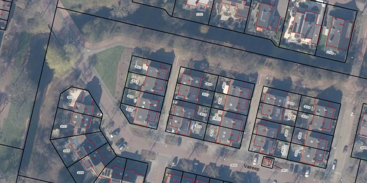 Gebruik de zoekbalk of klik op een perceel voor informatie over de adressen binnen dit perceel.