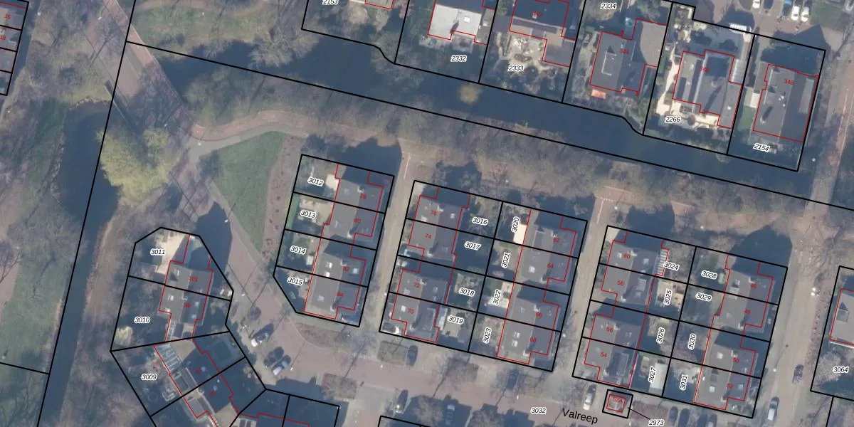 Het perceel waarop Valreep 76 staat heeft een oppervlakte van 188 m². Dit is een middelgroot perceel. De perceeloppervlakte wordt geregistreerd door het Kadaster. Gedetailleerde informatie over de maten van dit perceel kunt u vinden in het rapport Kadastrale kaart met maatvoering van Valreep 76.