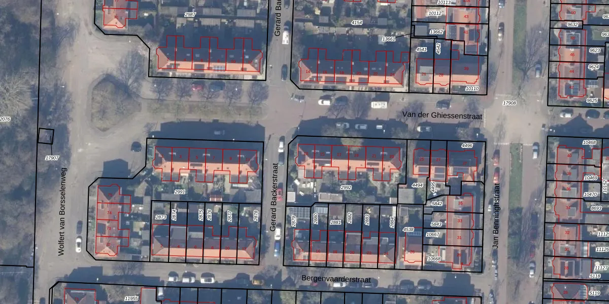 Het perceel waarop Van der Ghiessenstraat 13 staat heeft een oppervlakte van 850 m². Dit is een groot perceel. De perceeloppervlakte wordt geregistreerd door het Kadaster. Gedetailleerde informatie over de maten van dit perceel kunt u vinden in het rapport Kadastrale kaart met maatvoering van Van der Ghiessenstraat 13.