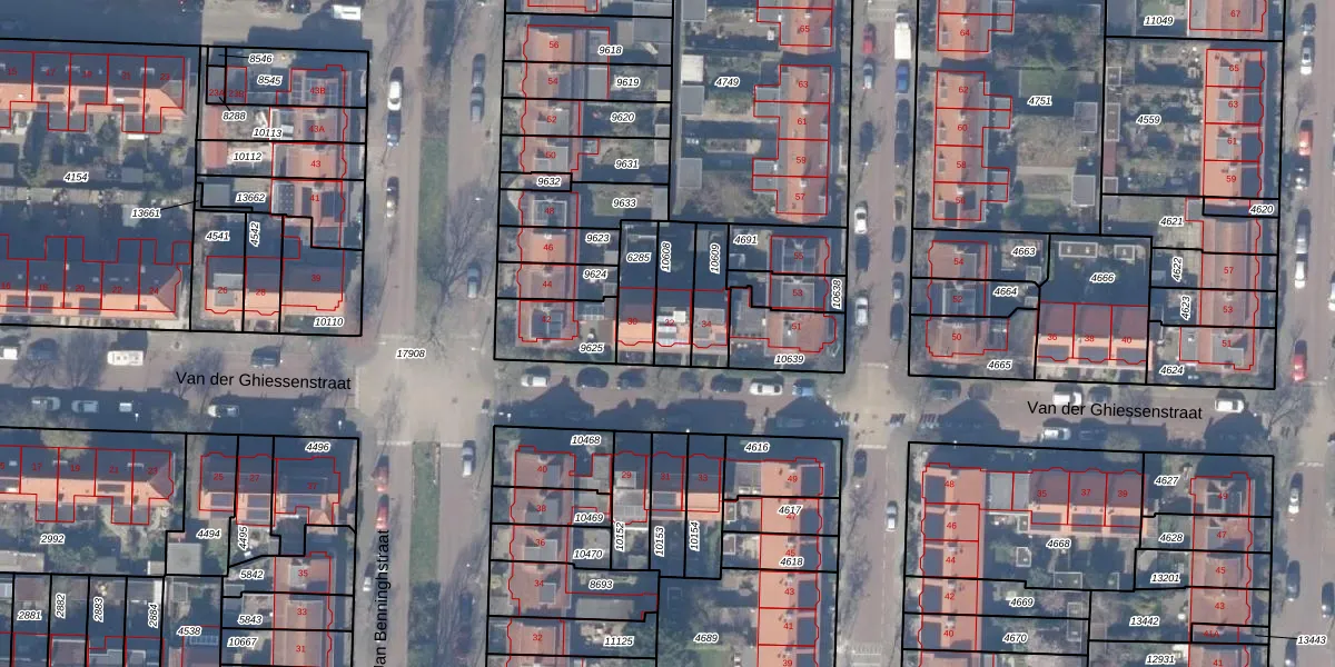 Gebruik de zoekbalk of klik op een perceel voor informatie over de adressen binnen dit perceel.