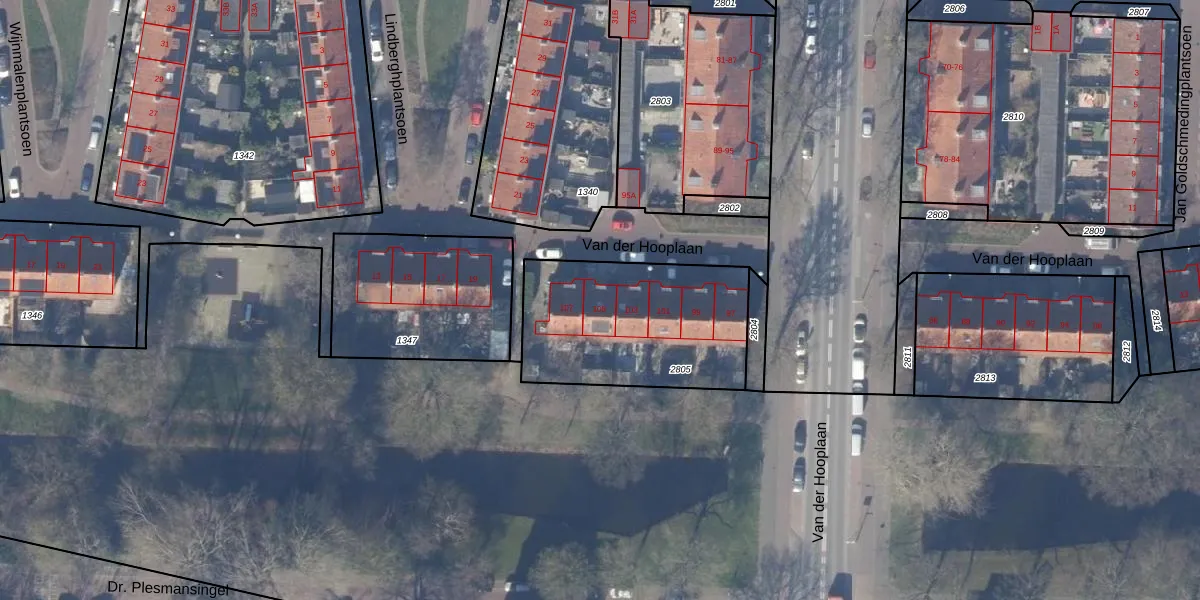 Het perceel waarop Van der Hooplaan 105 staat heeft een oppervlakte van 760 m². Dit is een groot perceel. De perceeloppervlakte wordt geregistreerd door het Kadaster. Gedetailleerde informatie over de maten van dit perceel kunt u vinden in het rapport Kadastrale kaart met maatvoering van Van der Hooplaan 105.