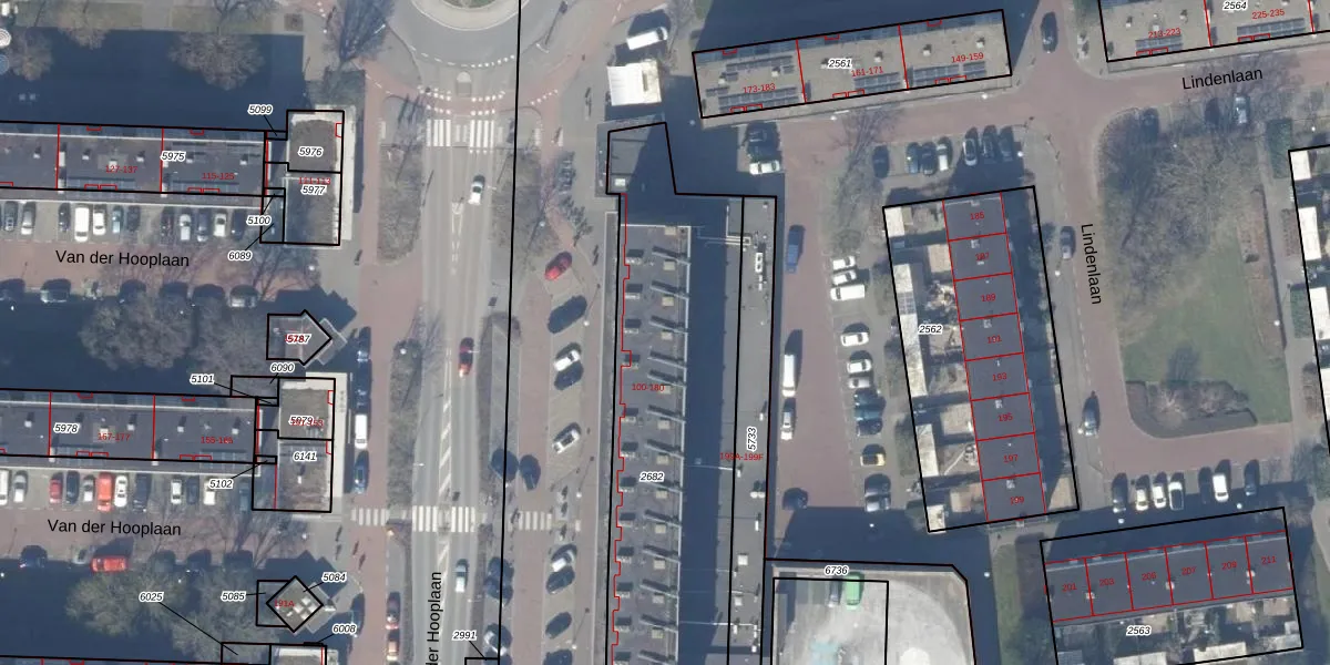 Het perceel waarop Van der Hooplaan 126 staat heeft een oppervlakte van 1642 m². Dit is een zeer groot perceel. De perceeloppervlakte wordt geregistreerd door het Kadaster. Gedetailleerde informatie over de maten van dit perceel kunt u vinden in het rapport Kadastrale kaart met maatvoering van Van der Hooplaan 126.