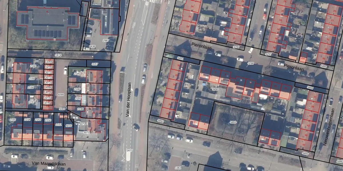Het perceel waarop Van der Hooplaan 34 staat heeft een oppervlakte van 3252 m². Dit is een zeer groot perceel. De perceeloppervlakte wordt geregistreerd door het Kadaster. Gedetailleerde informatie over de maten van dit perceel kunt u vinden in het rapport Kadastrale kaart met maatvoering van Van der Hooplaan 34.