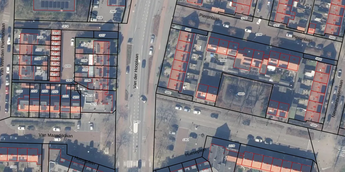 Het perceel waarop Van der Hooplaan 40 staat heeft een oppervlakte van 3252 m². Dit is een zeer groot perceel. De perceeloppervlakte wordt geregistreerd door het Kadaster. Gedetailleerde informatie over de maten van dit perceel kunt u vinden in het rapport Kadastrale kaart met maatvoering van Van der Hooplaan 40.