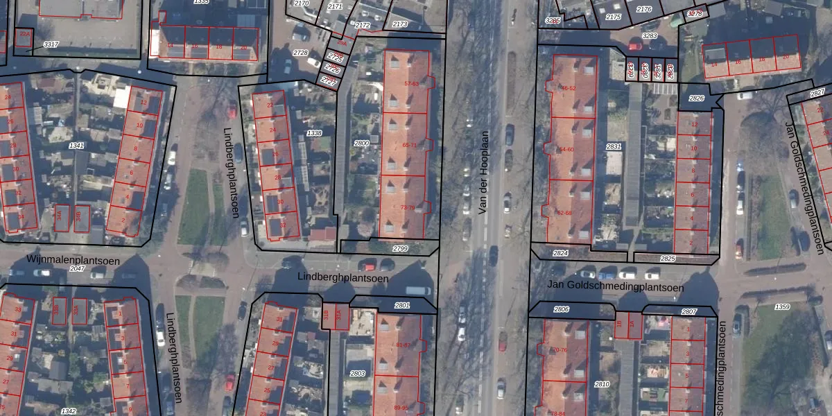 Het perceel waarop Van der Hooplaan 77 staat heeft een oppervlakte van 1205 m². Dit is een zeer groot perceel. De perceeloppervlakte wordt geregistreerd door het Kadaster. Gedetailleerde informatie over de maten van dit perceel kunt u vinden in het rapport Kadastrale kaart met maatvoering van Van der Hooplaan 77.