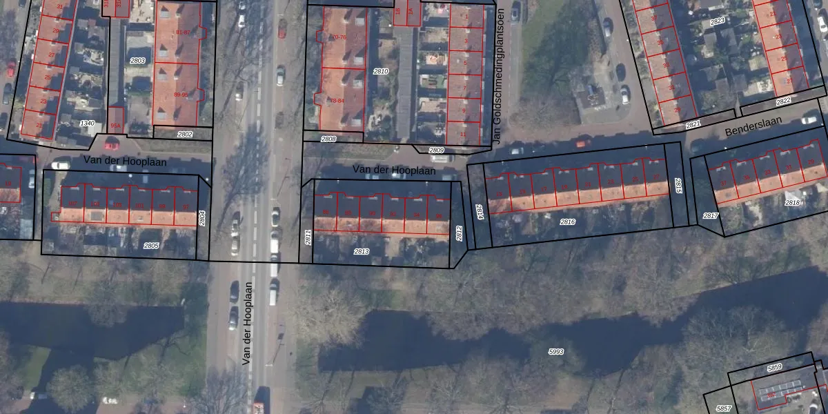 Het perceel waarop Van der Hooplaan 94 staat heeft een oppervlakte van 677 m². Dit is een groot perceel. De perceeloppervlakte wordt geregistreerd door het Kadaster. Gedetailleerde informatie over de maten van dit perceel kunt u vinden in het rapport Kadastrale kaart met maatvoering van Van der Hooplaan 94.