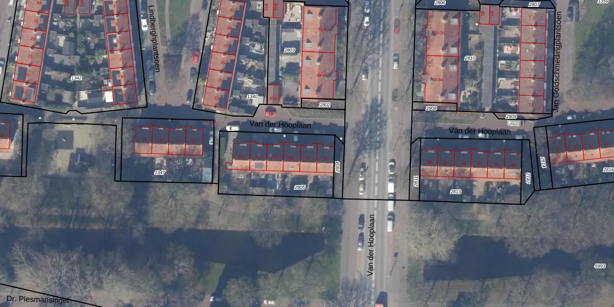 Van der Hooplaan 99 is gelegen op kadastraal perceel ASV00M2805. Deze kadastrale aanduiding is uniek en wordt gebruikt door het Kadaster om eigendomsrechten en andere zakelijke rechten vast te leggen. Het perceel maakt onderdeel uit van de kadastrale gemeente Amstelveen.