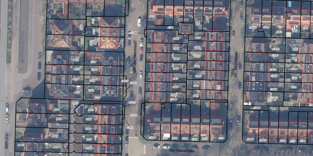 Het perceel waarop Van der Veerelaan 36 staat heeft een oppervlakte van 165 m². Dit is een middelgroot perceel. De perceeloppervlakte wordt geregistreerd door het Kadaster. Gedetailleerde informatie over de maten van dit perceel kunt u vinden in het rapport Kadastrale kaart met maatvoering van Van der Veerelaan 36.