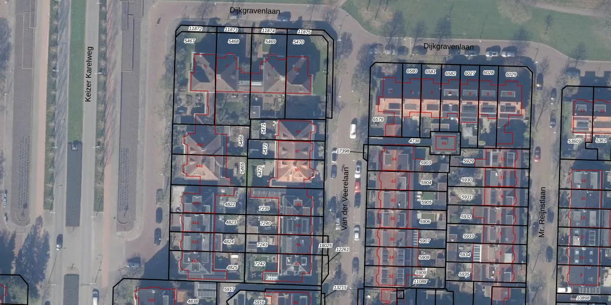 Van der Veerelaan 97 is gelegen op kadastraal perceel ASV00H5472. Deze kadastrale aanduiding is uniek en wordt gebruikt door het Kadaster om eigendomsrechten en andere zakelijke rechten vast te leggen. Het perceel maakt onderdeel uit van de kadastrale gemeente Amstelveen.