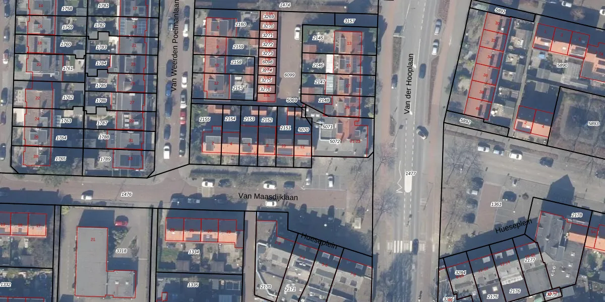 Gebruik de zoekbalk of klik op een perceel voor informatie over de adressen binnen dit perceel.
