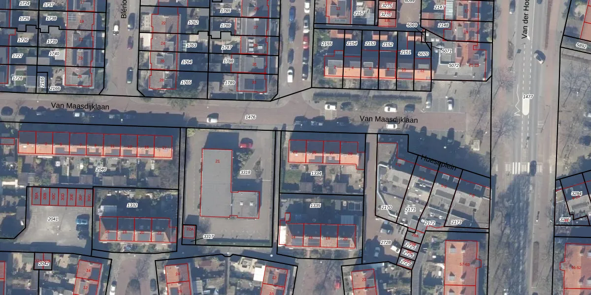 Het perceel waarop Van Maasdijklaan 23 staat heeft een oppervlakte van 600 m². Dit is een groot perceel. De perceeloppervlakte wordt geregistreerd door het Kadaster. Gedetailleerde informatie over de maten van dit perceel kunt u vinden in het rapport Kadastrale kaart met maatvoering van Van Maasdijklaan 23.