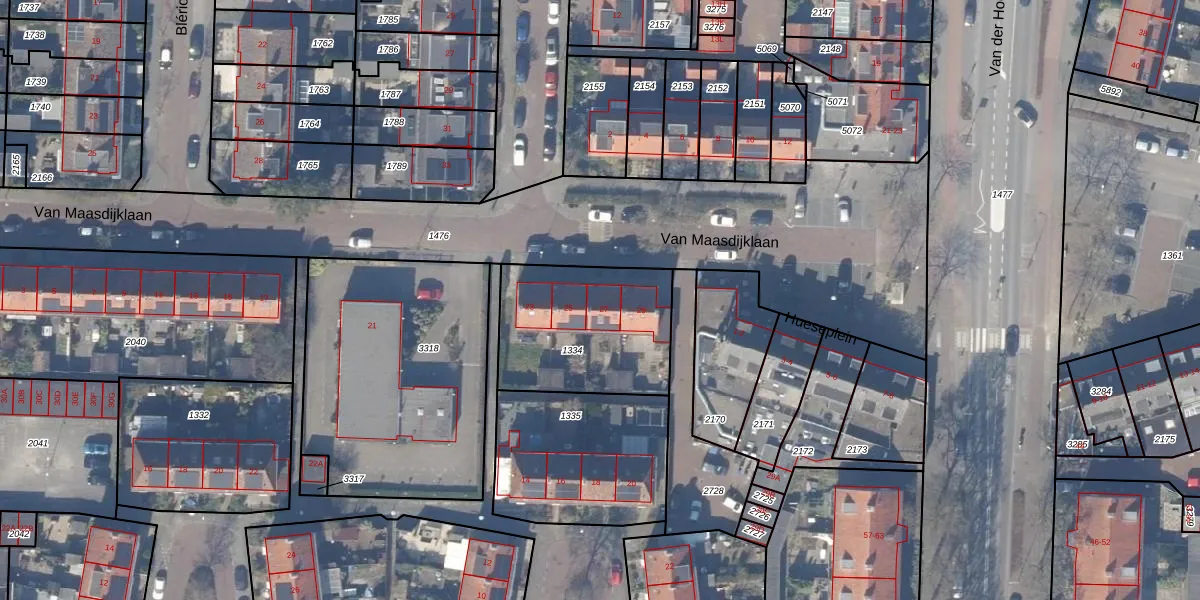 Het perceel waarop Van Maasdijklaan 27 staat heeft een oppervlakte van 600 m². Dit is een groot perceel. De perceeloppervlakte wordt geregistreerd door het Kadaster. Gedetailleerde informatie over de maten van dit perceel kunt u vinden in het rapport Kadastrale kaart met maatvoering van Van Maasdijklaan 27.