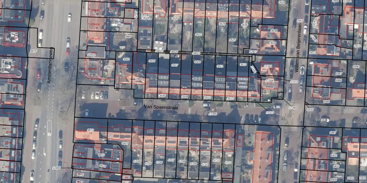 Van Spaenstraat 12 is gelegen op kadastraal perceel ASV00H3508. Deze kadastrale aanduiding is uniek en wordt gebruikt door het Kadaster om eigendomsrechten en andere zakelijke rechten vast te leggen. Het perceel maakt onderdeel uit van de kadastrale gemeente Amstelveen.