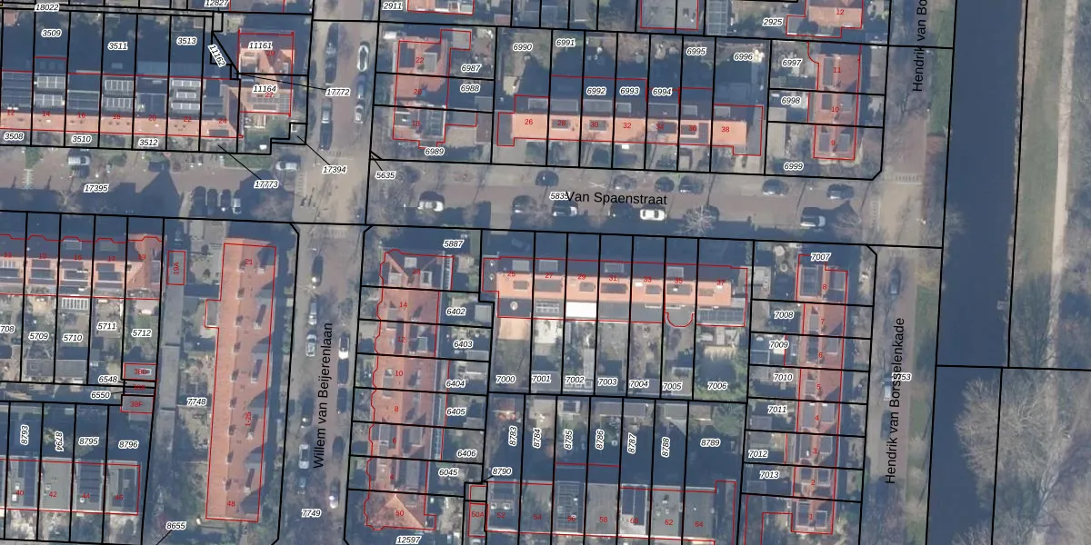 Gebruik de zoekbalk of klik op een perceel voor informatie over de adressen binnen dit perceel.
