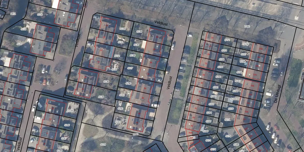 Gebruik de zoekbalk of klik op een perceel voor informatie over de adressen binnen dit perceel.
