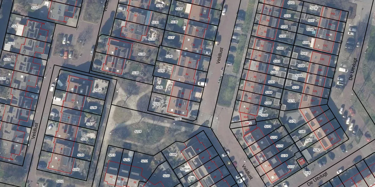 Veldlust 38 is gelegen op kadastraal perceel ASV00M5142. Deze kadastrale aanduiding is uniek en wordt gebruikt door het Kadaster om eigendomsrechten en andere zakelijke rechten vast te leggen. Het perceel maakt onderdeel uit van de kadastrale gemeente Amstelveen.