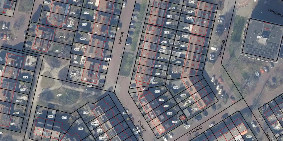 Veldlust 43 is gelegen op kadastraal perceel ASV00M5165. Deze kadastrale aanduiding is uniek en wordt gebruikt door het Kadaster om eigendomsrechten en andere zakelijke rechten vast te leggen. Het perceel maakt onderdeel uit van de kadastrale gemeente Amstelveen.