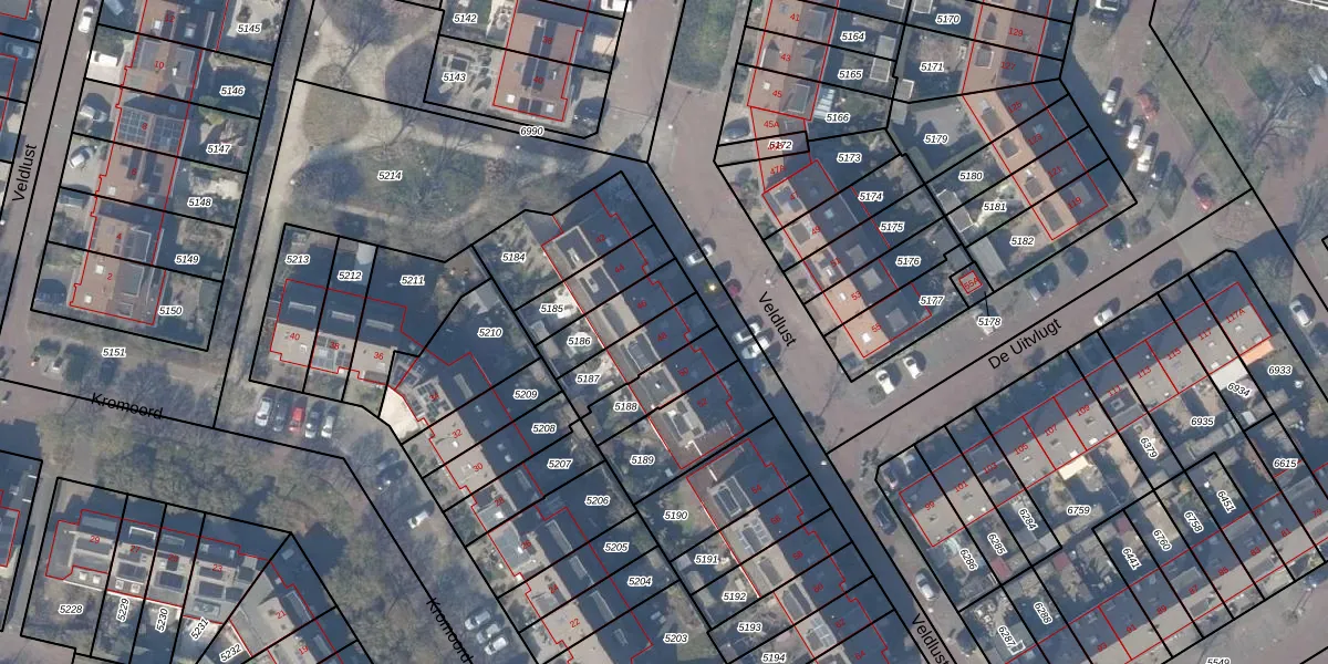 Veldlust 48 is gelegen op kadastraal perceel ASV00M5187. Deze kadastrale aanduiding is uniek en wordt gebruikt door het Kadaster om eigendomsrechten en andere zakelijke rechten vast te leggen. Het perceel maakt onderdeel uit van de kadastrale gemeente Amstelveen.