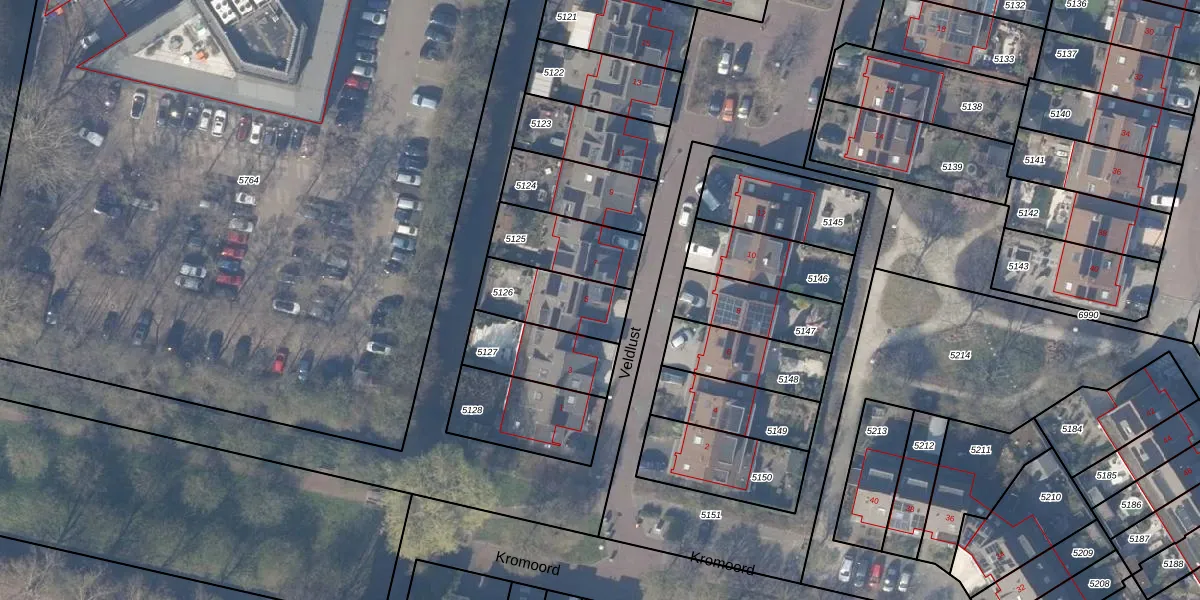 Veldlust 5 is gelegen op kadastraal perceel ASV00M5126. Deze kadastrale aanduiding is uniek en wordt gebruikt door het Kadaster om eigendomsrechten en andere zakelijke rechten vast te leggen. Het perceel maakt onderdeel uit van de kadastrale gemeente Amstelveen.