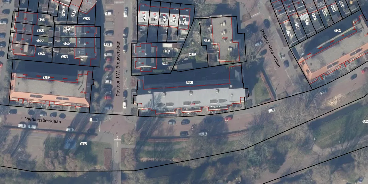 Vierlingsbeeklaan 20 is gelegen op kadastraal perceel ASV00O8841. Deze kadastrale aanduiding is uniek en wordt gebruikt door het Kadaster om eigendomsrechten en andere zakelijke rechten vast te leggen. Het perceel maakt onderdeel uit van de kadastrale gemeente Amstelveen.
