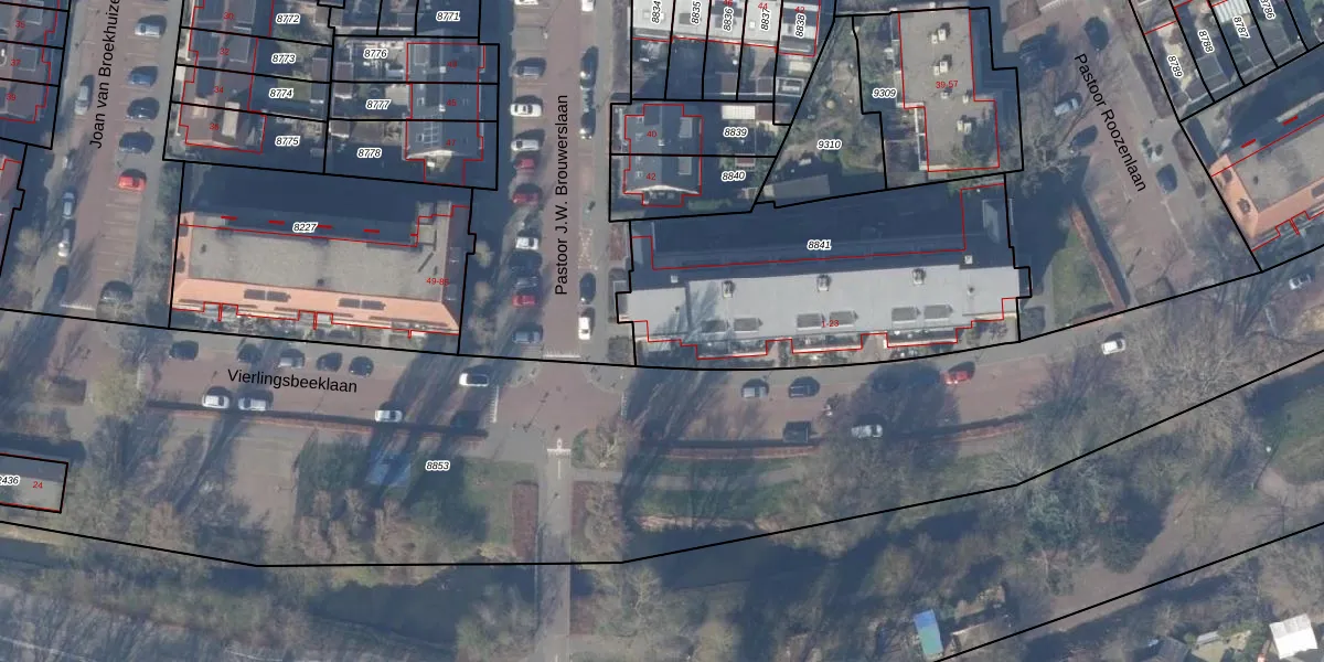 Vierlingsbeeklaan 7 is gelegen op kadastraal perceel ASV00O8841. Deze kadastrale aanduiding is uniek en wordt gebruikt door het Kadaster om eigendomsrechten en andere zakelijke rechten vast te leggen. Het perceel maakt onderdeel uit van de kadastrale gemeente Amstelveen.
