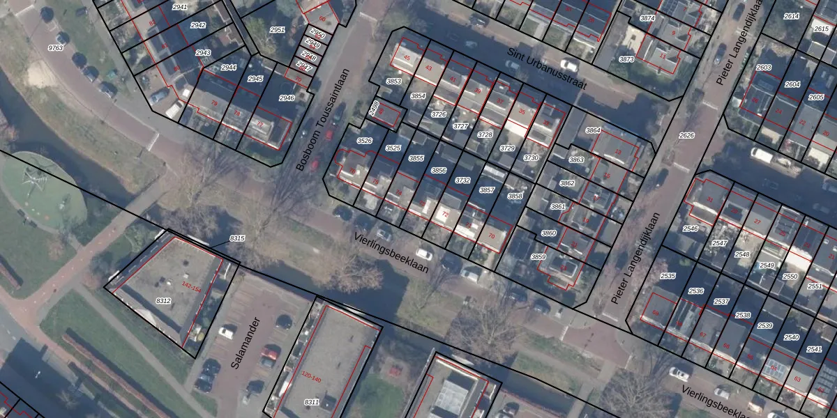 Gebruik de zoekbalk of klik op een perceel voor informatie over de adressen binnen dit perceel.